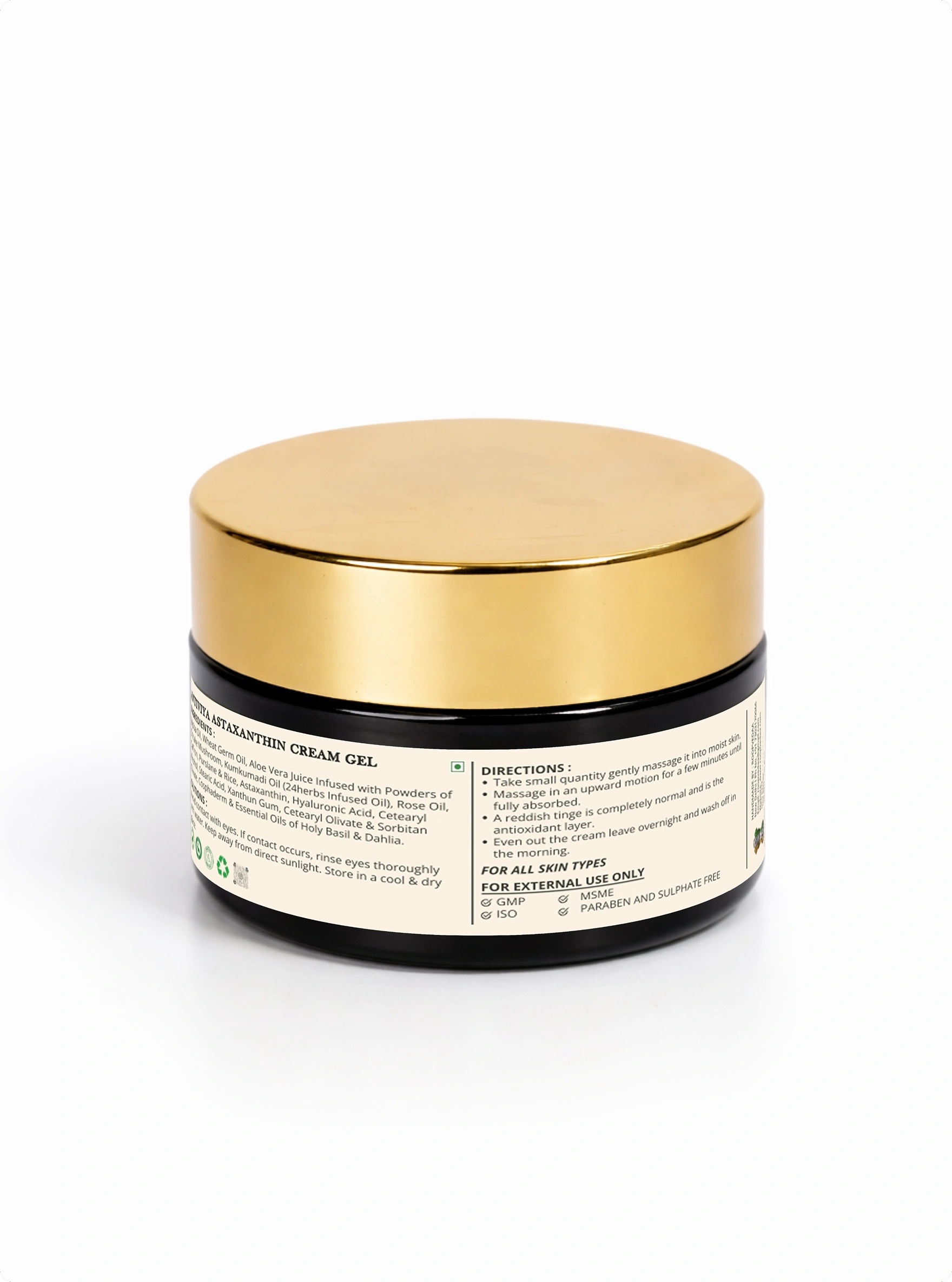 Antiviya Astaxanthin Cream Gel is a rich antioxidant-infused overnight cream gel designed to nourish, repair, and protect the skin from environmental stress. Powered by astaxanthin and multiple botanical oils, this formulation helps improve skin vitality, hydration, and overall radiance while supporting skin regeneration during nighttime recovery.