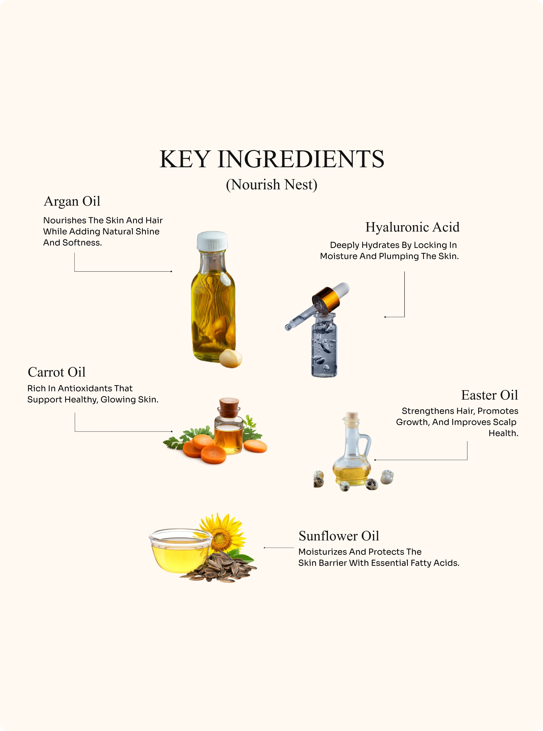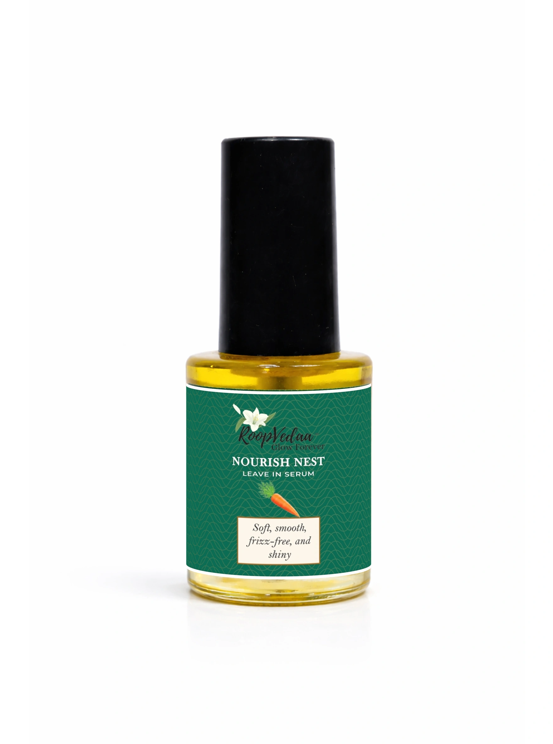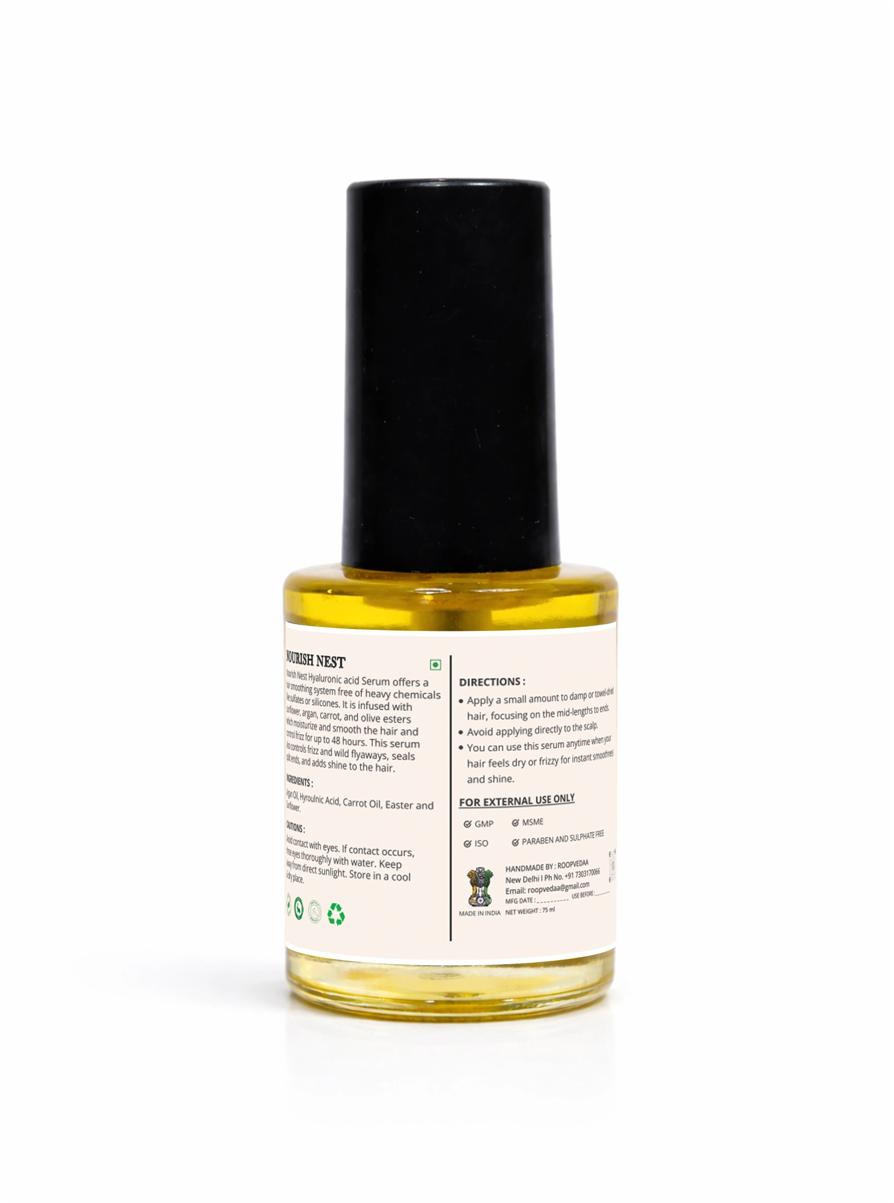 Nourish Nest Hair Serum is a lightweight, non-sticky styling serum designed to smooth frizz, tame flyaways, and enhance natural shine. Formulated without heavy silicones or harsh chemicals, this serum nourishes the hair while improving manageability, leaving strands soft, glossy, and well-conditioned without weighing them down.
