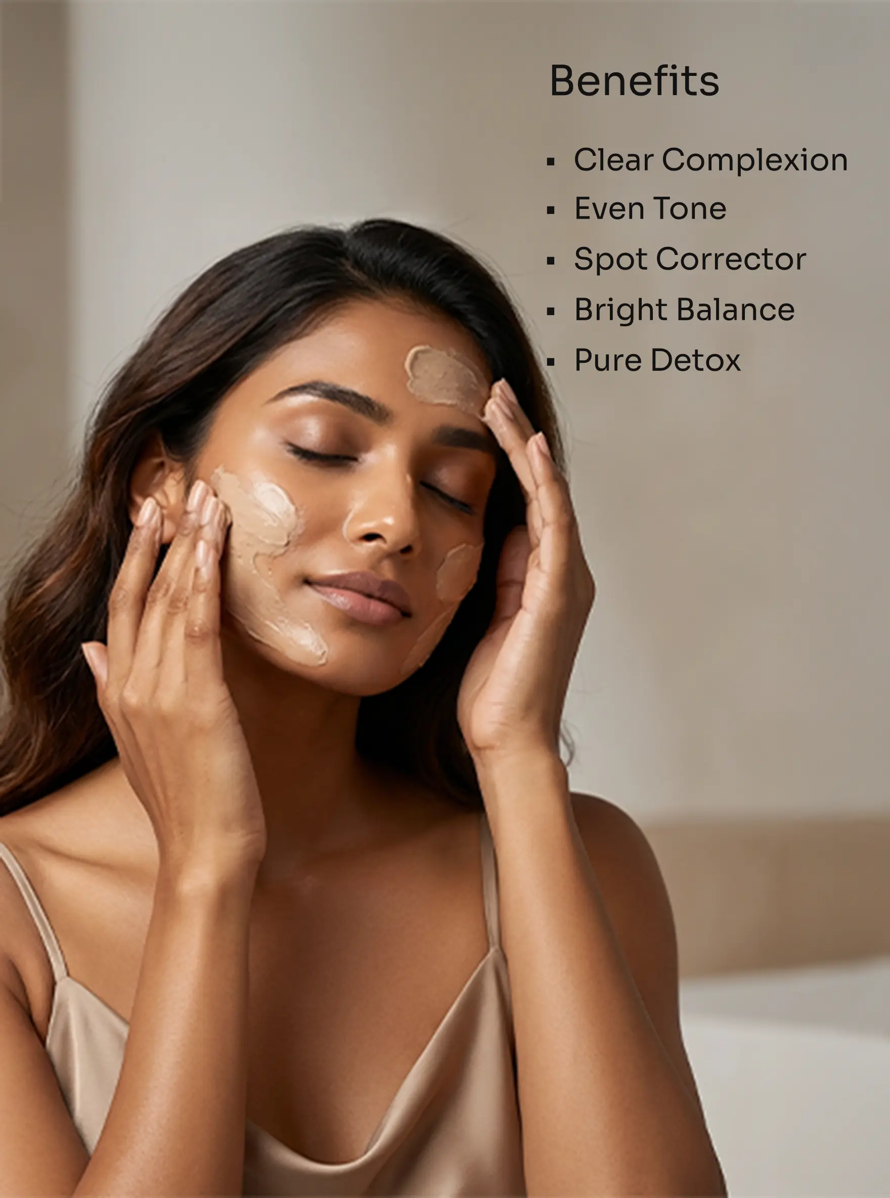 - Multani Mitti (Fuller’s Earth) – Known for its deep-cleansing properties, it helps absorb excess oil, remove impurities, and tighten pores.