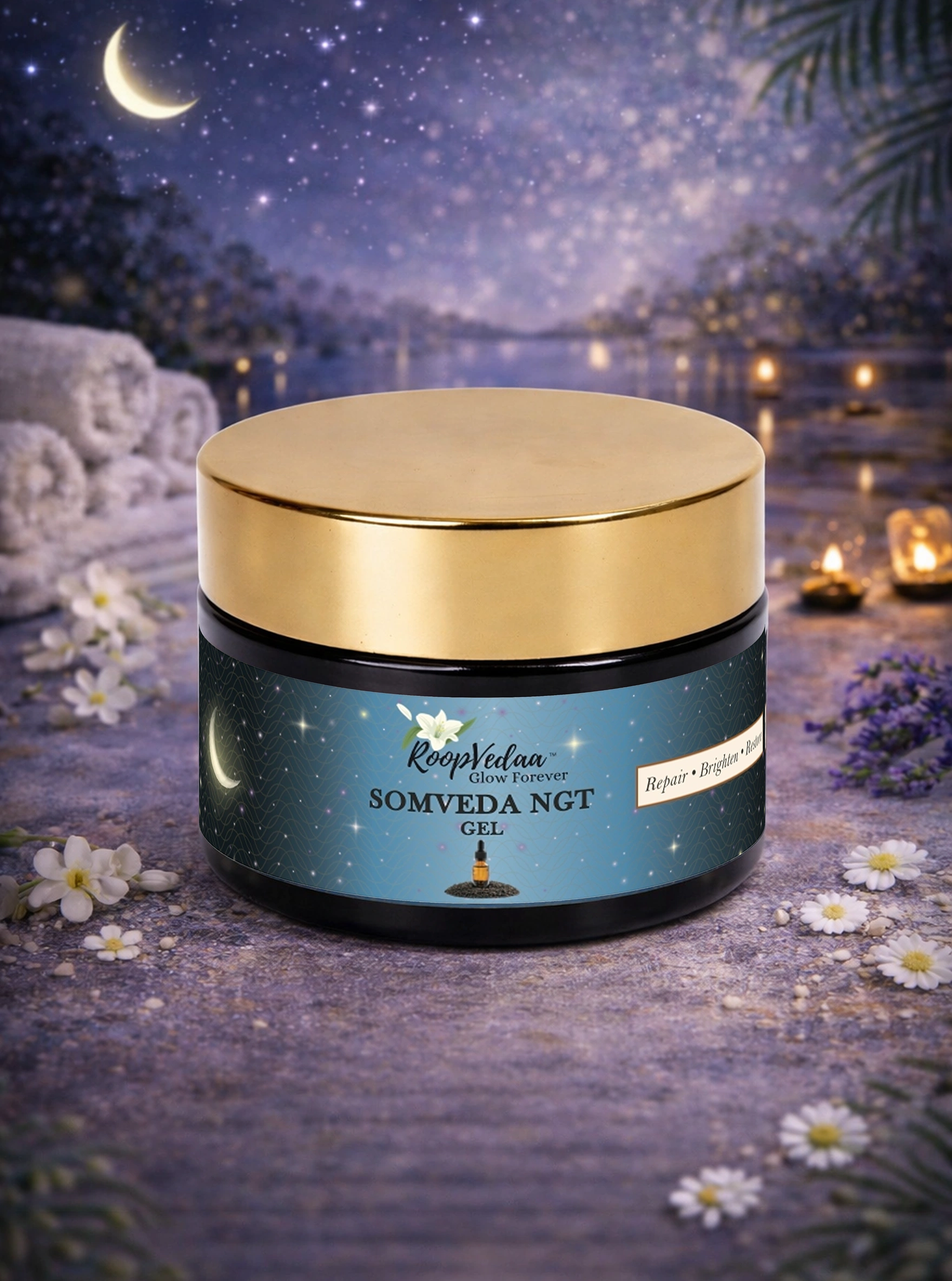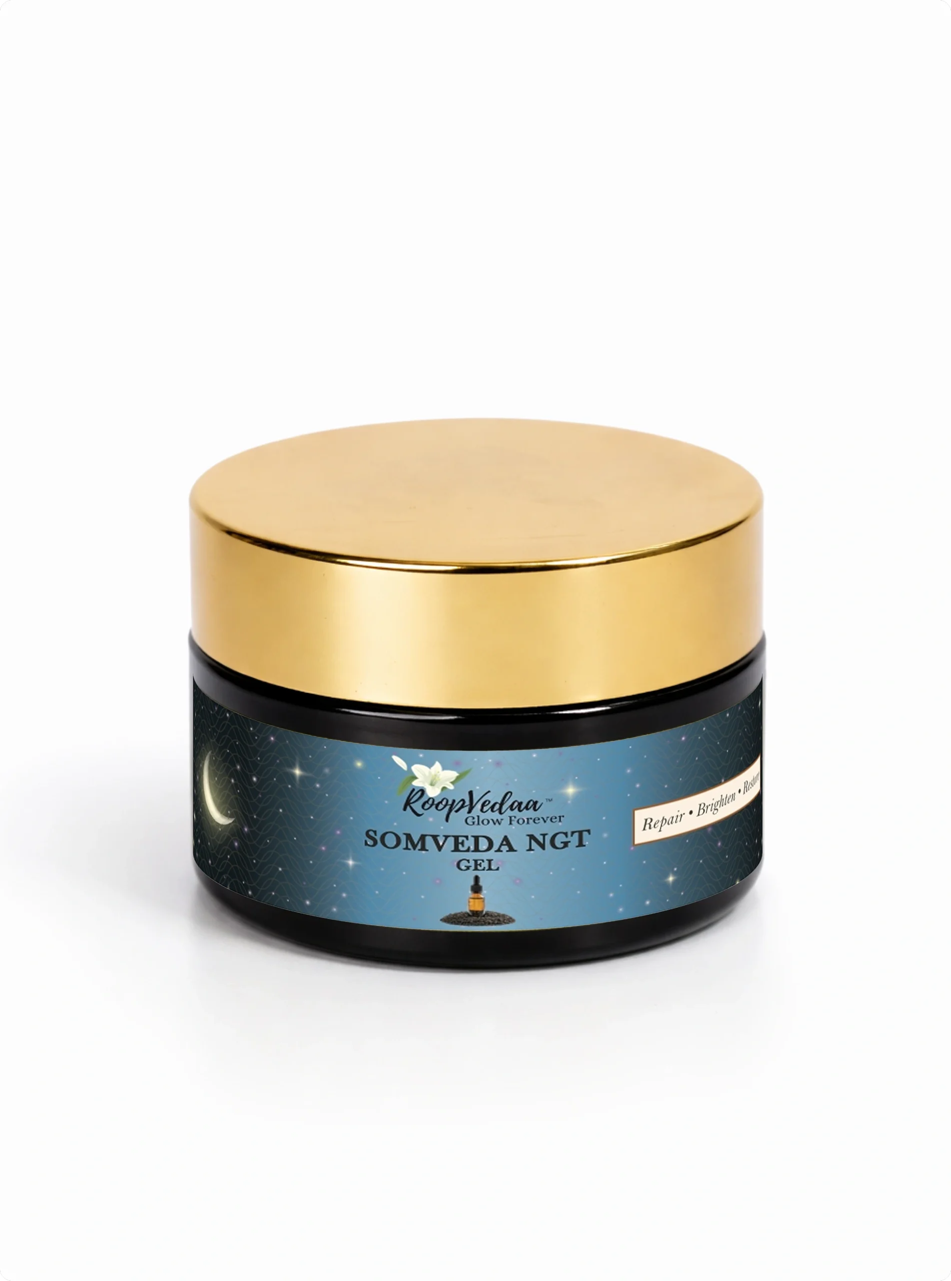 Somveda NGT Gel is a night-use facial gel formulated for overnight skin care. Crafted with aloe vera, floral hydrosols, botanical extracts, plant oils, and active ingredients, this gel is designed to be applied before bedtime as part of a PM skincare routine. Intended for external use only, it supports skin conditioning during nighttime use.