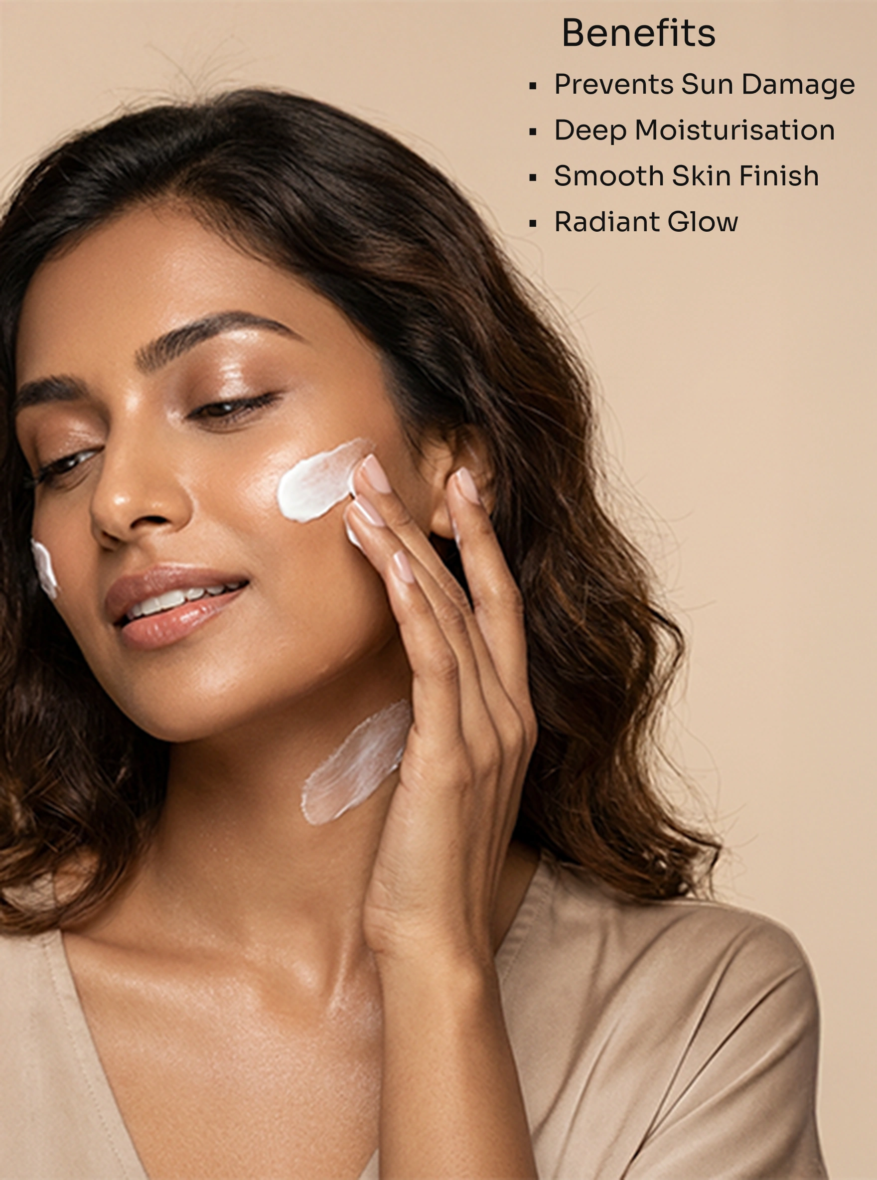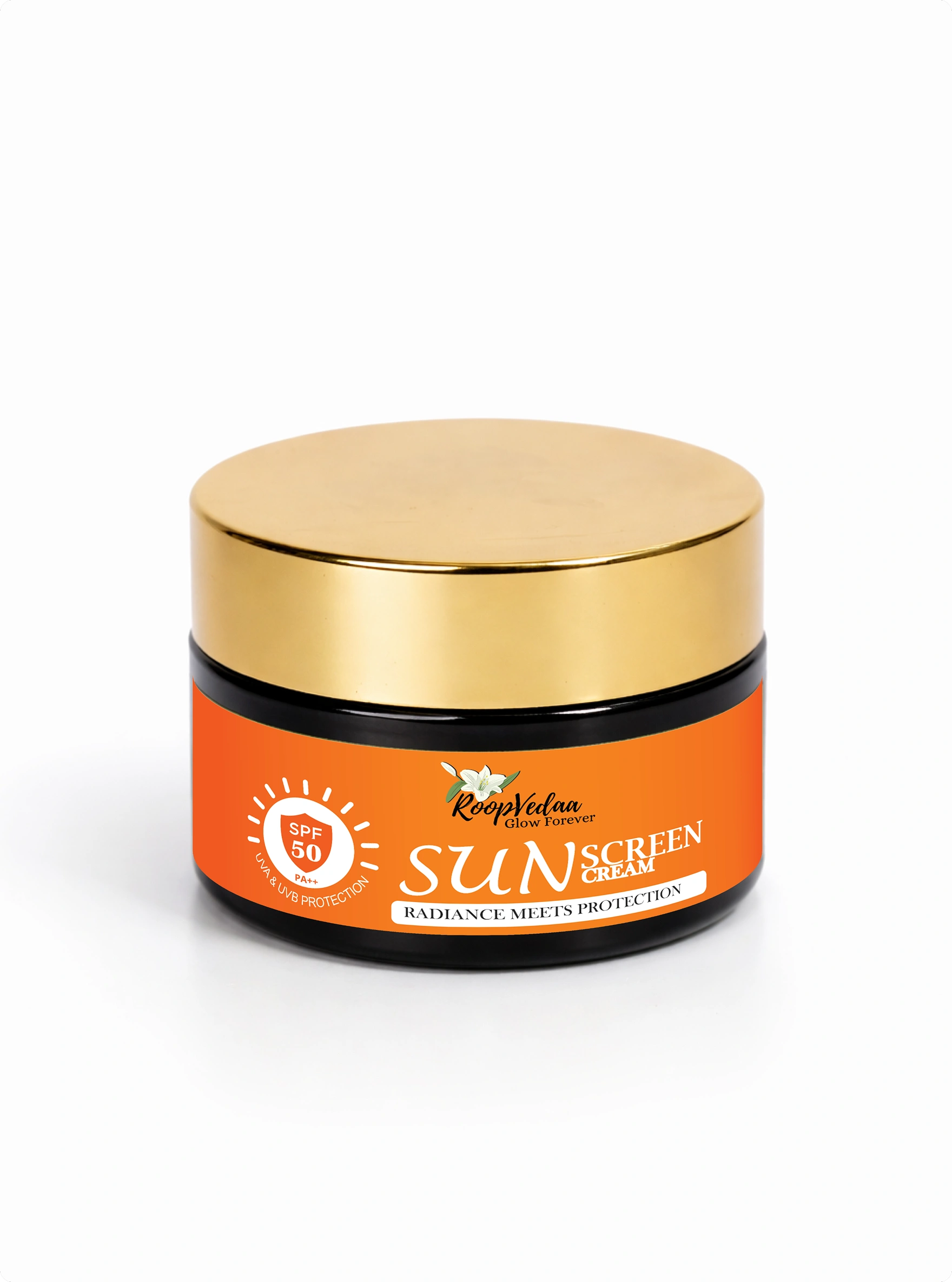 Sun Screen Cream is an all-natural, broad-spectrum sunscreen formulated to reduce tan, protect against photoaging, and enhance the skin’s natural glow. With SPF 50 and PA++ rating, this non-greasy cream provides effective protection from UVA and UVB rays without leaving a white cast. It also doubles as a moisturiser, helping keep the skin hydrated, protected, soft, and naturally dewy throughout the day.